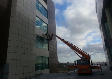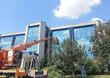 Dış cephe cam temizliği hizmeti sırasında eğitimli personeli ve yeni nesil ekipmanları ile güvenilir bir hizmet sunuyoruz.