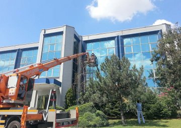 Dış cephe cam temizliği hizmeti sırasında eğitimli personeli ve yeni nesil ekipmanları ile güvenilir bir hizmet sunuyoruz.